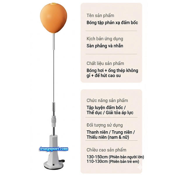 Bạn đang tìm kiếm một phương pháp tập luyện vừa giúp rèn luyện phản xạ, vừa giúp giải tỏa áp lực công việc ngay tại nhà hay văn phòng? Bóng tập phản xạ đấm bốc tự đứng thế hệ mới với thiết kế đế hút cao su thông minh chính là sự lựa chọn hàng đầu. Khác với các loại trụ đấm truyền thống cồng kềnh, sản phẩm này mang lại sự linh hoạt tối đa, phù hợp cho cả người lớn và trẻ em, giúp biến mọi không gian nhỏ hẹp thành một "phòng gym" mini chuyên nghiệp.