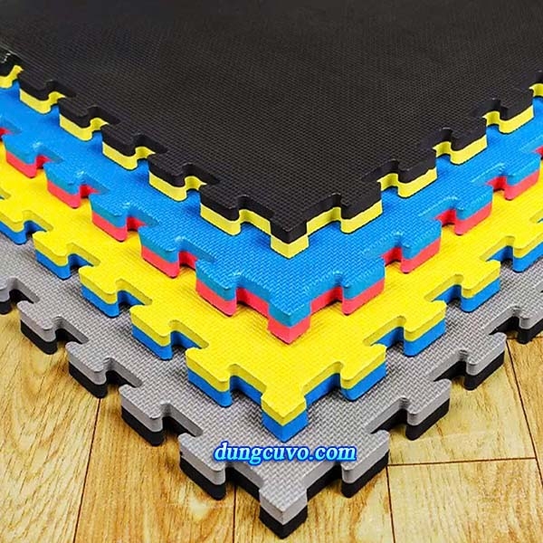 Thảm ghép mút xốp EVA hàng Việt Nam chất lượng cao, sử dụng để trải lót sàn phòng tập luyện cho các bộ môn thể thao nhào lộn, Gym, Yoga, trường học,  nhà trẻ và phòng tập luyện võ thuật các bộ môn như: Taekwondo; Karate; Vovinam; Võ cổ truyền; Pencak Silat; Wushu Sanshu; Aikido; Judo; Boxing; Kickboxing; Muay; MMA.. .